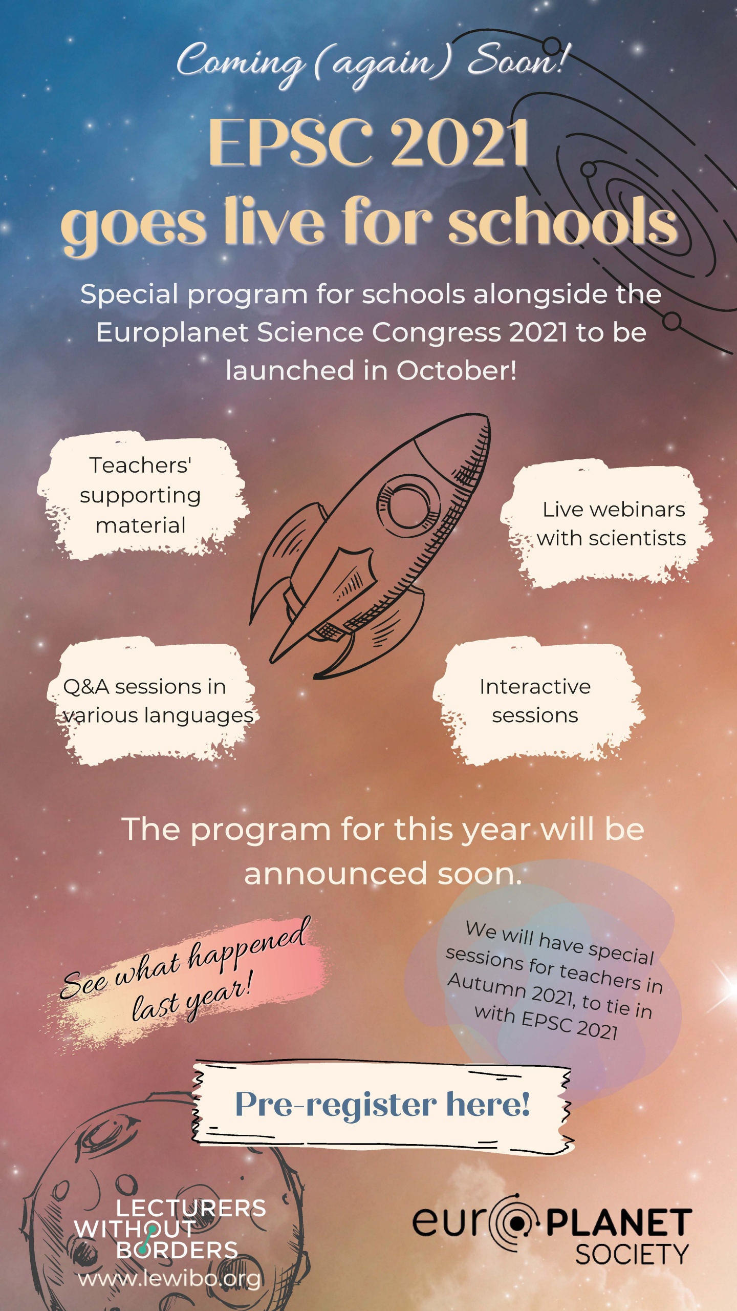 These activities are kindly being organised by the researchers of Lecturers without Borders, the Europlanet Early Career (EPEC) Network and the Diversity Committee of the Europlanet Society.